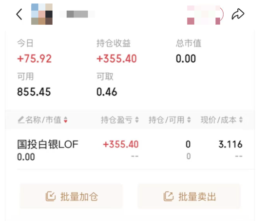 值得注意的是,此前,随着国投白银LOF大涨,一套关于白银LOF的套利玩法开始出现,利用LOF场内交易价格与净值的价差,在T+2日时,份额到账后,以场内高价卖出,赚取差价。按收益计算,若溢价率70%,申购500元可赚约350元。